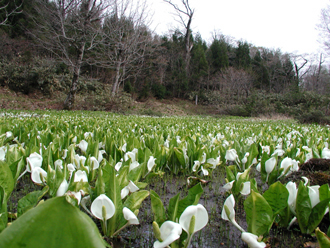 ■群生する水芭蕉(山中峠)
